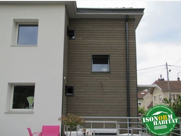 Réalisation d’une isolation par l’extérieur avec pose d’un bardage Mélèze Pré-Grisaillé.